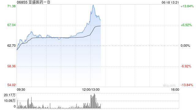 亚盛医药-B(06855)午前股价上涨4.55%,现报65.55港元,成交额1.92亿港元。