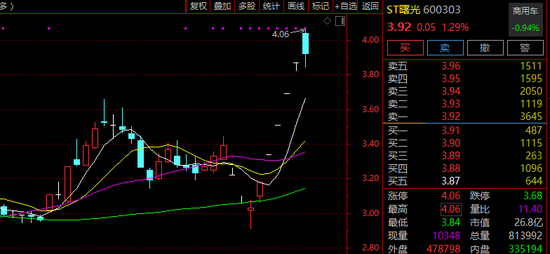 4月17日,ST曙光(600303)盘中最高涨至4.06元/股,当日报收3.92元/股,录得1.29%涨幅。