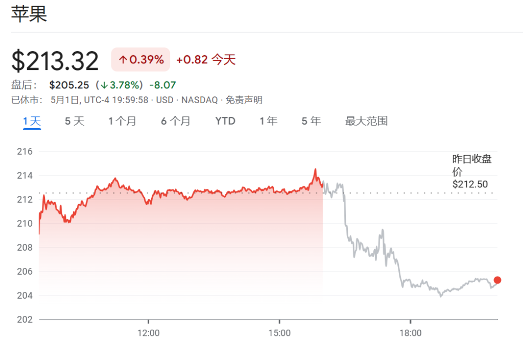 尽管有这些挑战,苹果本季度财务表现仍超出预期。苹果第二财季(1-3月)销售额增长5%至950亿美元,净利润增长近5%至248亿美元,iPhone销售额增长2%。然而,投资者对未来前景仍感担忧,苹果股价在盘后交易中下跌约4%。